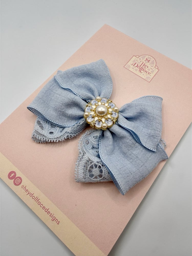 Spring Collection - Dusky Blue Emebellished Original Bow