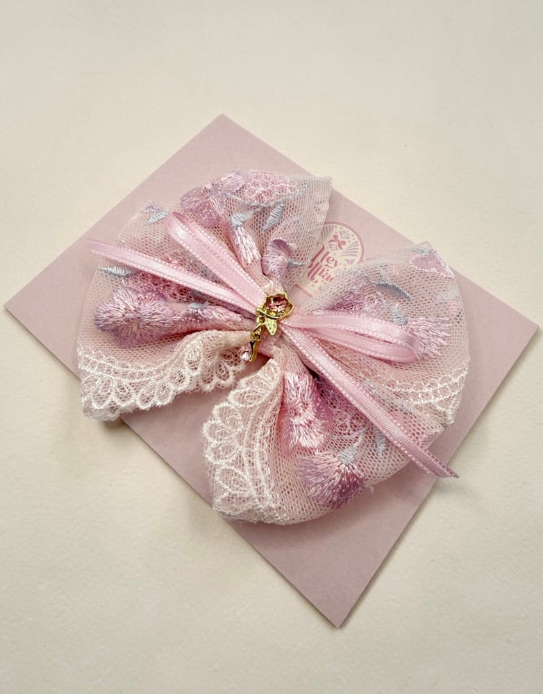 Spring Collection - Pink Lace Gem Centre Bow