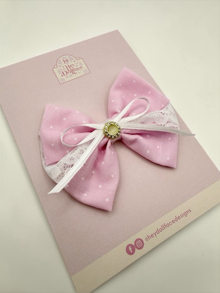 Spring Collection - Pink Polkadot & Lace Original Bow